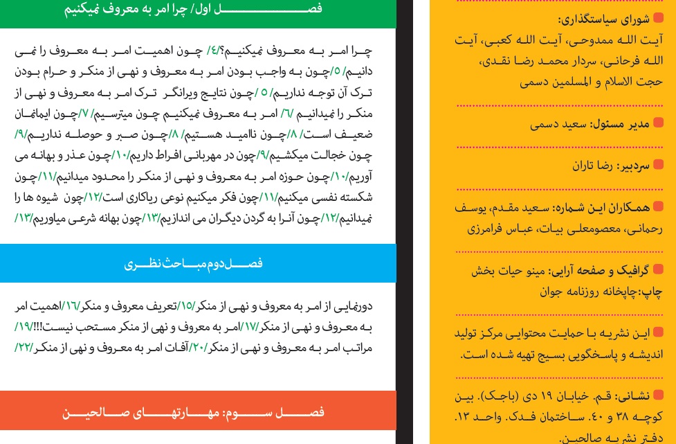 این کتاب، به تنوع سلیقه مخاطب توجه کرده و نگاهی کلی نسبت به امر به معروف و نهی از منکر ارائه میدهد.